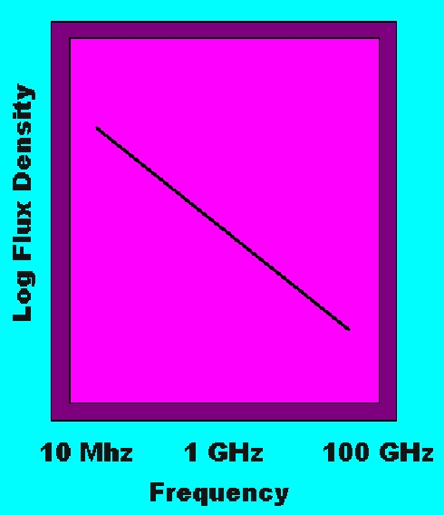 O espectro rádio da maioria das fontes é uma lei de potência. Se o espectro tiver o índice espectral igual ou maior que aproximadamente 0.5, será uma fonte de espectro inclinado. Essas fontes têm normalmente tamanhos angulares da ordem de 10 arcseg ou mais, e são identificados na maior parte como galáxias.